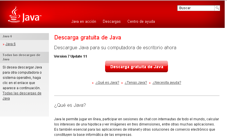 1-Entramos en http://www.java.com/es/download/ y pulsamos en: Descarga gratuita de Java.